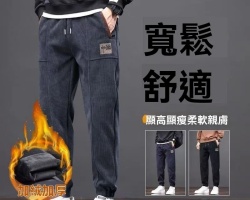 NT$1198秋冬新款歐棉絨保暖長褲,男衛褲寬鬆加絨加厚,男士運動休閒褲子詳情 - 加絨厚底鬆糕鞋NT$1080
