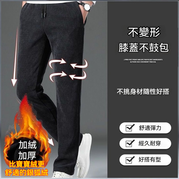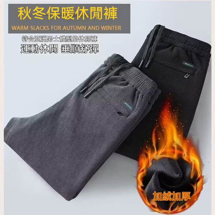 秋冬必備男士加絨休閒長褲 高彈燈芯絨布料 親膚保暖舒適 不卡襠不勒大腿 活動自如