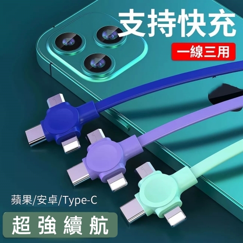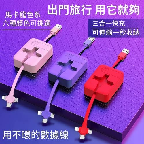 馬卡龍伸縮快充數據線,蘋果+安卓+Type-c 三合一充電線,可當手機支架,充電看劇兩不誤