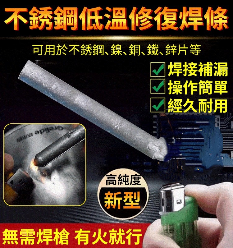「火機可焊接」不銹鋼低溫修復焊條 火爆熱銷中!家用万能焊接神器,铜铁铝木質石頭瓷磚都能焊接!使用簡單用途廣!